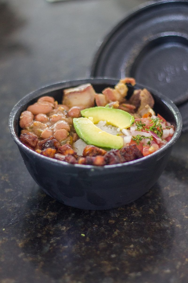 Bandeja Paisa is a hearty and satisfying Colombian dish that features a generous serving of rice, beans, ground meat, plantains, avocado, and arepa (corn cake). This wholesome platter is a beloved staple in Colombian cuisine.